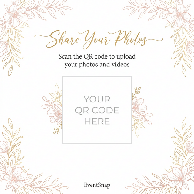 Beautiful, print-ready table card designs for your wedding, party, or corporate event. Download, paste your EventSnap QR code, and start collecting guest photos.