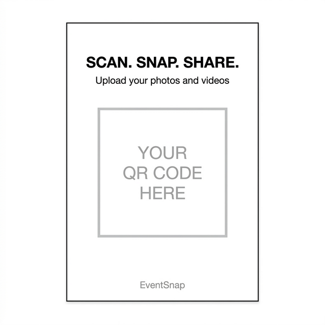 Open the template in Canva, Word, or any editor. Drag your EventSnap QR code onto the placeholder area.